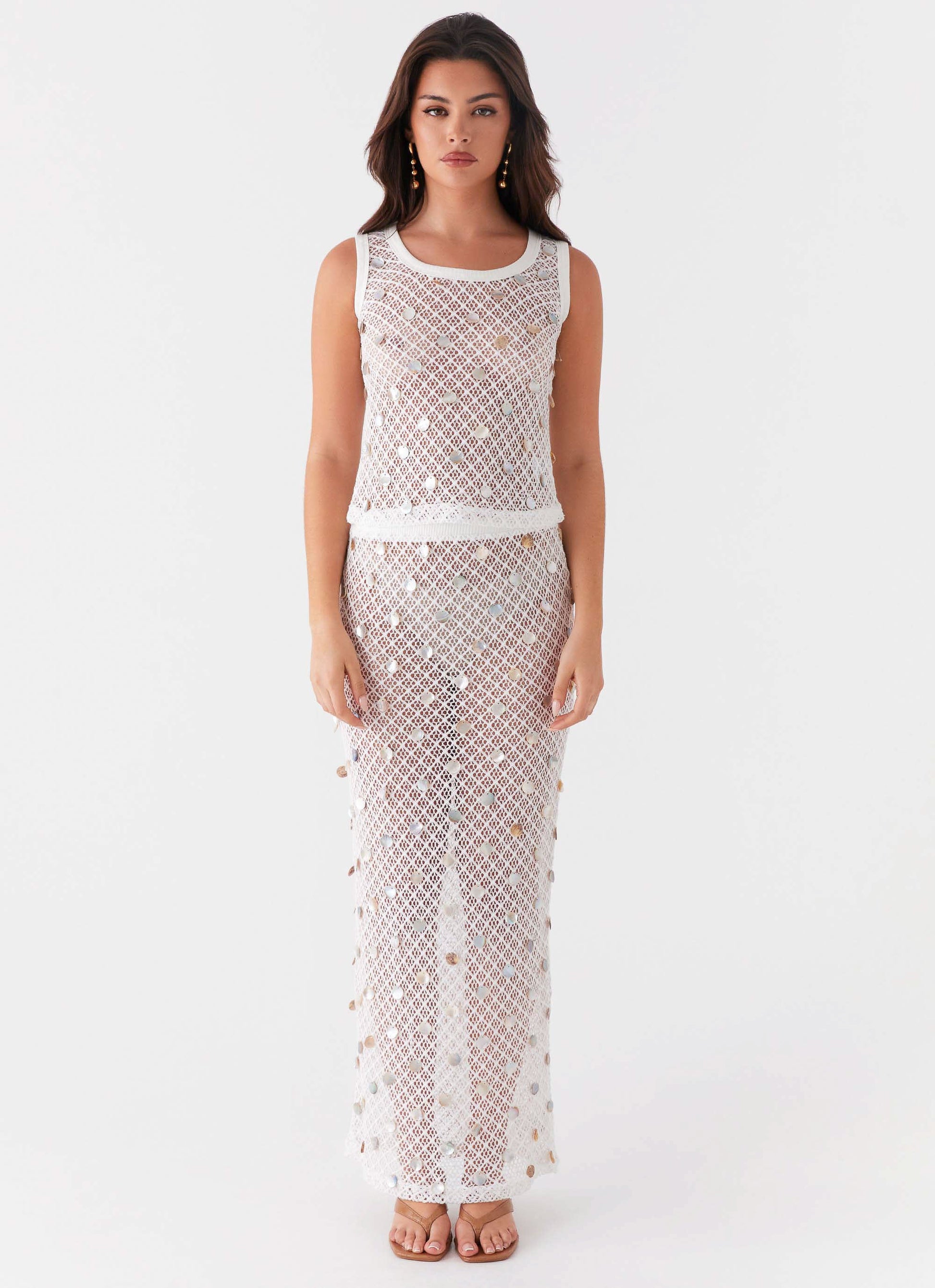 The Whitehaven Shell Tank Top is your go-to for laid-back elegance. Featuring a rounded neckline, ribbed detailing, and an unlined design, it’s perfect for pairing with anything, from golden skies to carefree nights.