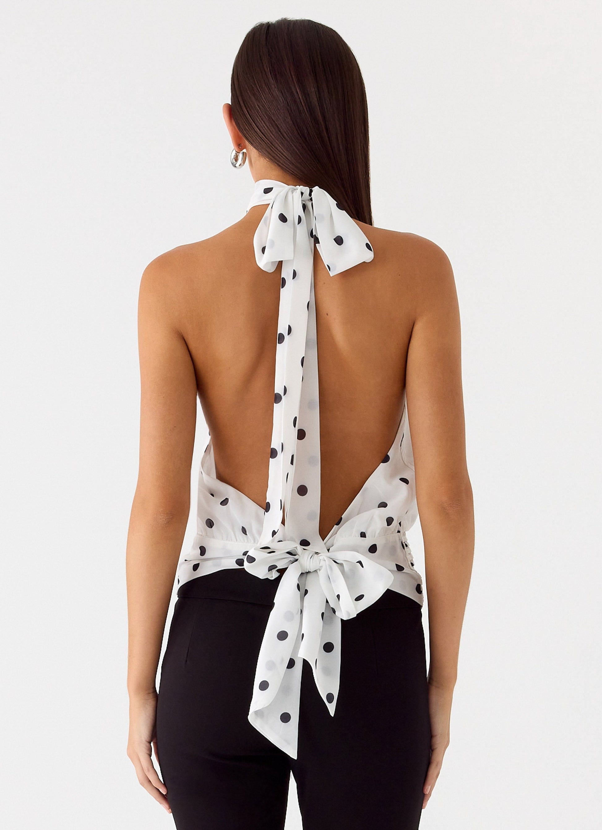 The Willow Chiffon Top is made for golden hour and after-dark allure. Featuring a halter neckline with thick neck tie strap and open back with back tie, this fully lined top is crafted from textured chiffon for a soft, elegant finish.