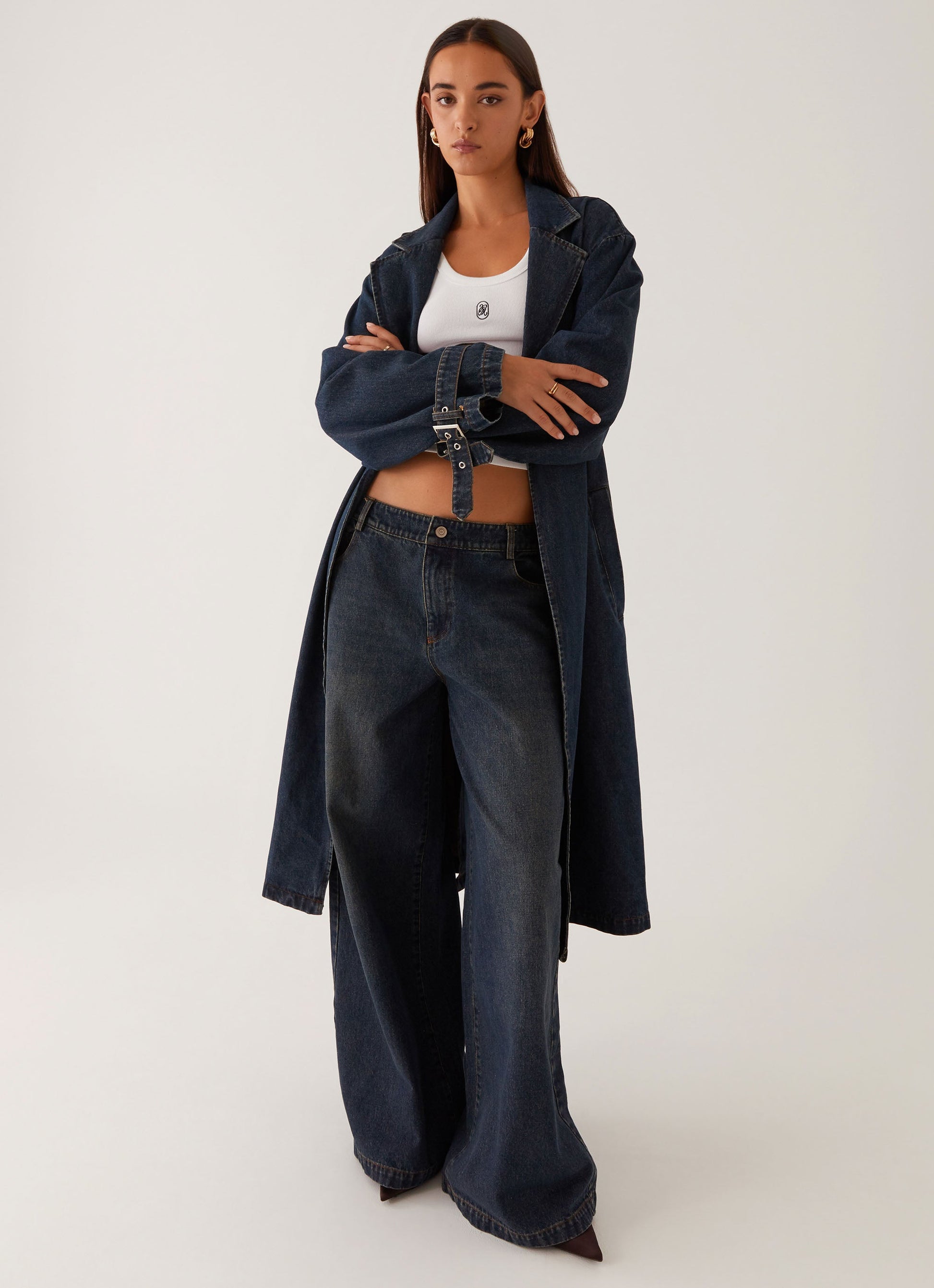 Step into the night with the Yosemite oversized trench coat—a dramatic layer for those who own the evening. Designed with a double-collared neckline and a flowing front tie, it blends bold structure with effortless charm.