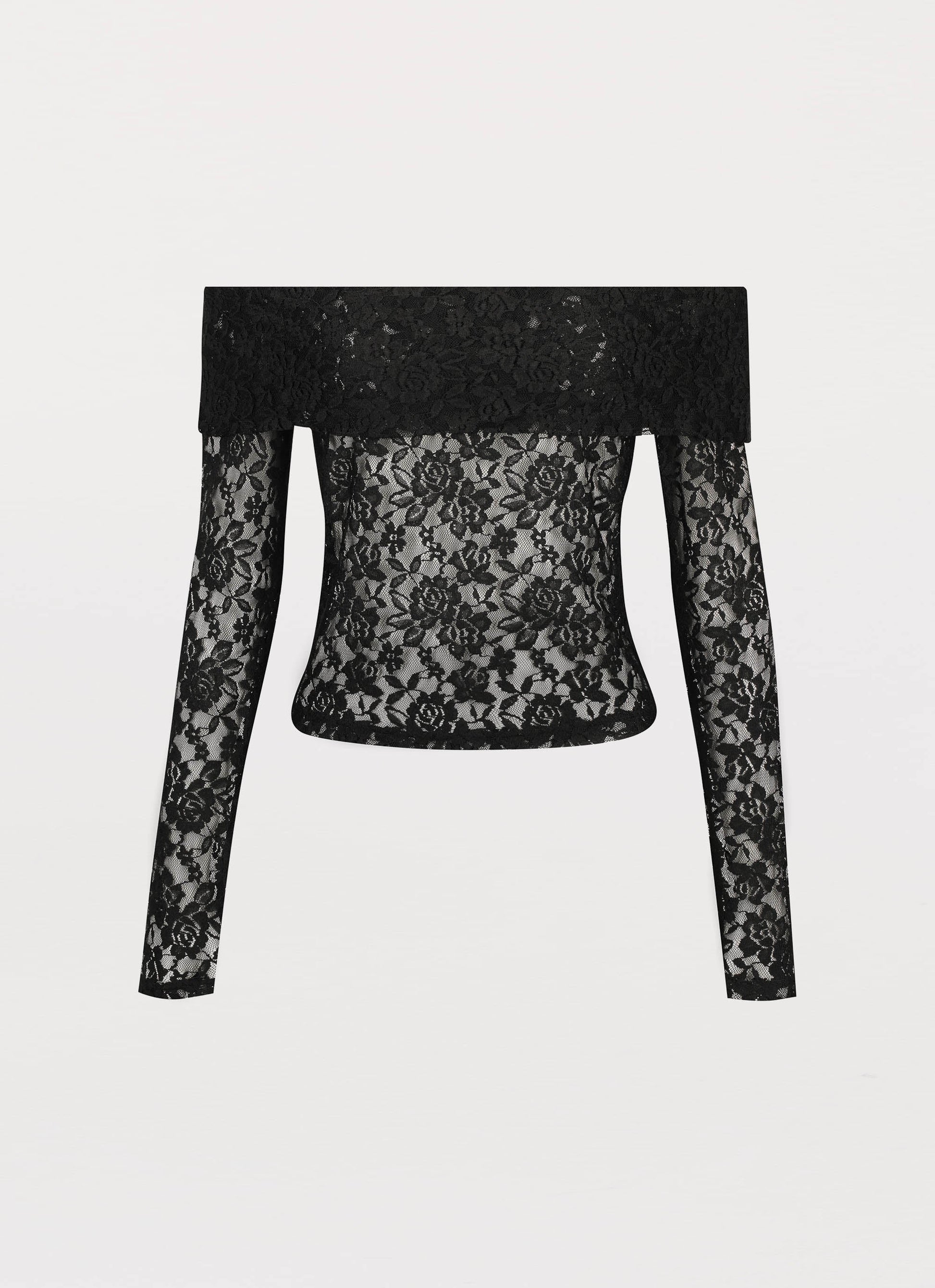 Lovely in lace! The Zephyra Lace Long Sleeve Top – romantic off-shoulder allure and sheer lace elegance. With a fold over neckline and a flattering fit, this top effortlessly transitions from casual chic to a romantic night out.